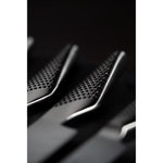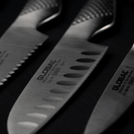 In the realm of cuisine, air is symbolized by poultry, and our Global Kaze 3 piece knife set draws inspiration from blades designed for poultry preparation. The knives within the Kaze collection feature fluting, which creates air pockets on the blades, effectively preventing food from adhering to them.