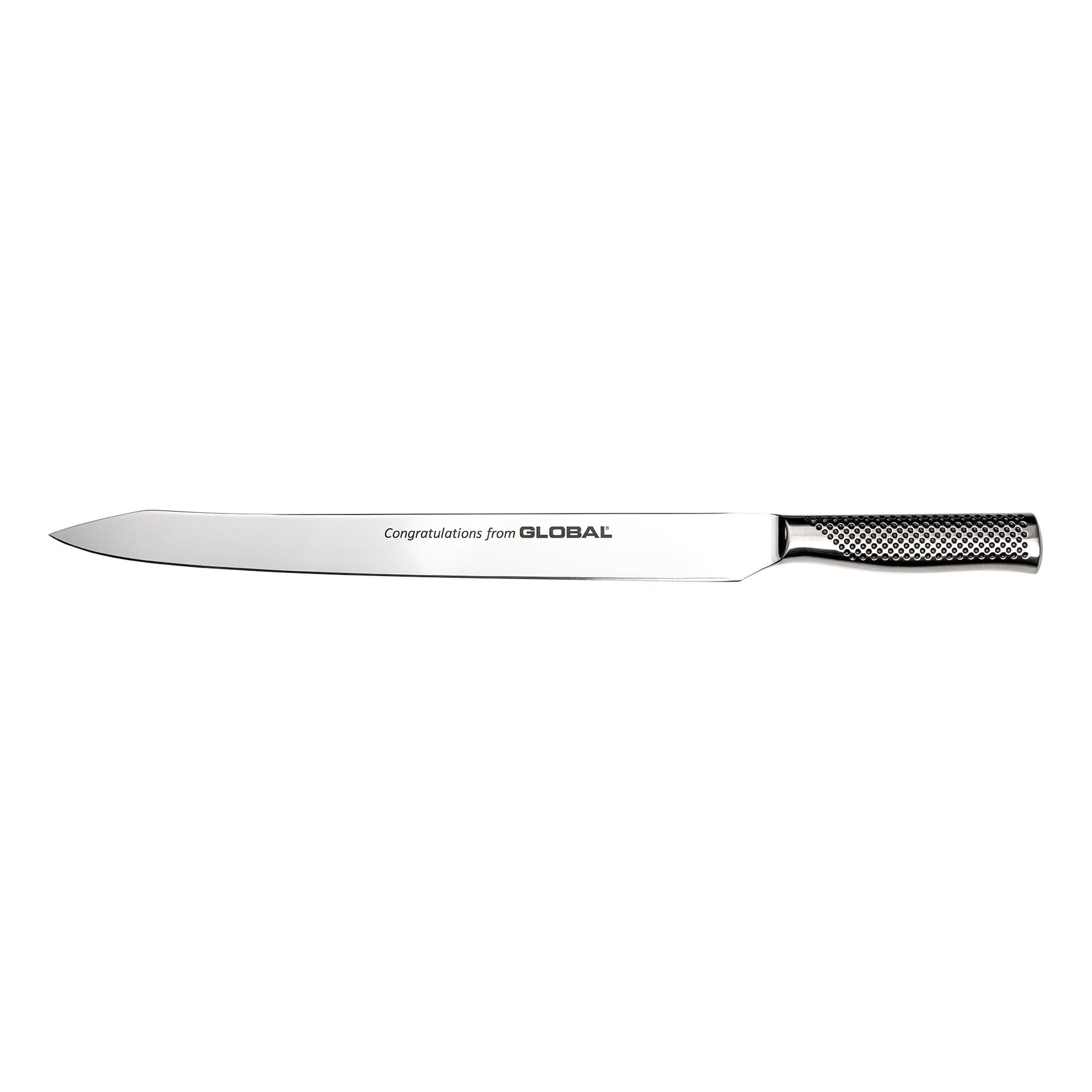 Michel Roux Jr asked Global Knives to create a wedding knife for his daughter's wedding. Global Knives said the minimum order was a dozen knives so 2 were given to the Roux family and there were another 10 remaining. These rare knives are now available to purchase from knives from japan's website and there will not be any further stock for them in the future. Which makes it a great collectors item or perhaps it could be used by an wedding events organiser. If you know someone that is a great fan of global knives and you want to make their wedding day special then this wedding knife would really stand out.