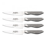 These four Global Steak Knives are presented in a handy in-drawer storage dock to be displayed either on a counter or stored away safely in a drawer.