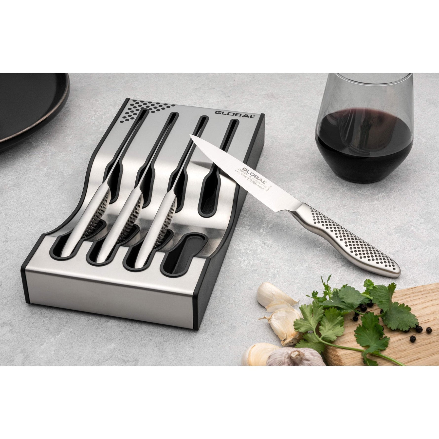 Not only do we have a new storage solution for your Chef’s Knives, but we also have a solution for your cutlery sets too! The ‘Little Essentials’ 4 & 8 piece Docks introduce a luxurious collection of a steak knife and fork sets presented in one of our Global ® Docks. Ideal for in-drawer or counter-top storage. Bring the quality of Global ® to your dinner table!