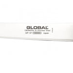 The GF-37 is Global's fully forged carving knife. It features a long 22cm blade, which can easily slice through the best cuts of meat. the addition of a bolster gives a bit of extra protection. With a long narrow blade the knife can also be used for filleting fish, slicing fish or preparing sashimi. It makes a poor chopping knife, because the blade is in line with the bottom of the bolster, meaning the knife can only really be used for slicing by drawing the knife backwards.