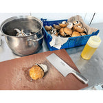 The G-49 17.5cm and the G-50 20cm are both Chinese chef's knives, whilst they look like cleavers, they are not suitable for this task. These rectangular knives, referred to in Chinese as Caidao are multipurpose knives. Chinese people and chef's will use these knives in the same way that Western chef's will use Western style chef's knives, such as the G-2. These knives will be typically used to prepare all kinds of meat and fish. In fact it is typically the ONLY knife that a Chinese chef will use. Whilst the Chinese chef's knife resembles a cleaver, it does in fact have a sharp thin blade like a standard G series knife. The G-49 is a typical Chinese Caidao with a 2.2mm thick blade and if used as a cleaver, the blade will usually get damaged. Different parts of the blade are used for different tasks with the front of the blade used for a tapping cutting stroke, the middle and back of the knife for heavier chopping work. Whilst it may seem awkward those skilled with a Chinese blade can use them for any kitchen task.