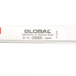 The handle is the same as other G series knives and is comfortable to hold. There is a gap of about a inch from the handle where the blade is not sharpened to provide a bit of protection. This is the longest knife blade that Global produce and as such does not fit in any of the blocks and also may not slot in a drawer. Ideally it needs to be put on a magnetic rack.
