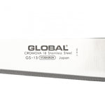 The GS-13 is quite similar to the GS-11 and is a sister knife to it. The GS-13 has very slight serrations along the edge of the blade. Not as pronounced as a fully serrated blade, we find that these small serrations actually work really well with fruit that has a firm skin, but watery center where you do not want the contents to go flying everywhere! The serrated blade is able to saw through the skin while keeping a very clean cut. We feel that this works particularly well with tomatoes, plums, nectarines and grapes. The knife is a utility knife though and can be used for most kitchen tasks.