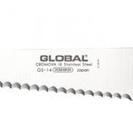 The GS-14 is basically the GS-11 with large serrations in the blade. A multi function knife, the serrations allow the utility knife to cut through tougher materials such as bread or allow it to be used with fruits and vegetables with thick skins and soft centers. The knife has a medium sized blade meaning that it will be used often and makes a great addition to any set without a bread knife or just for those who do not use bread knives very often and need something to make do.