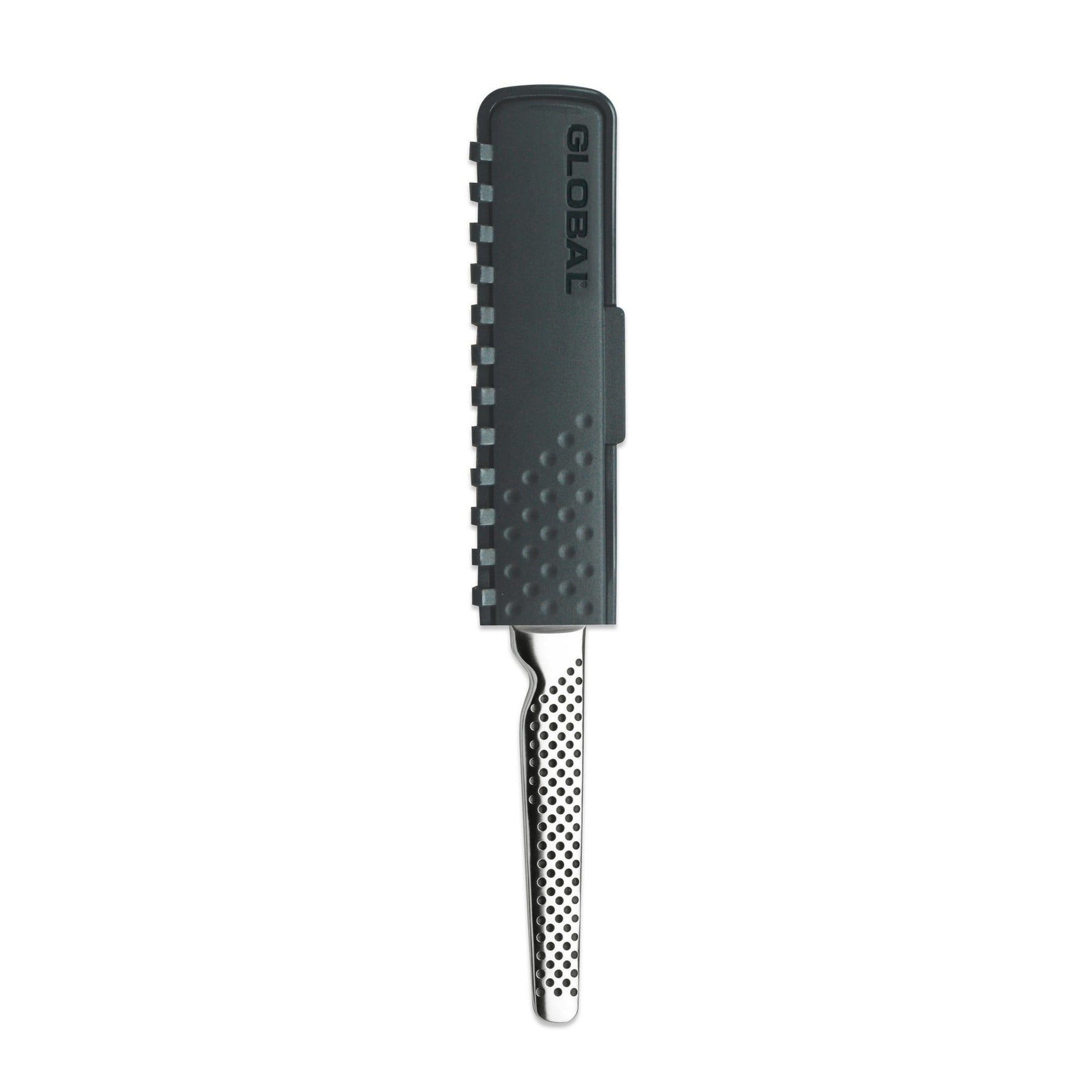 Global magnetic blade guards are designed to secure your knives safely and conveniently. When you don ’t have a block to store knives, or if you prefer to store knives in a chef's case or drawer, these guards offer the perfect solution to keep your knives safe and sharp. Each guard is made of a soft touch and flexible plastic material with a magnetic strip inside to hold the knife in place. The guard has a hinged design to make it easy to insert and take out your knife. The guards come in 3 sizes, small, medium and large. Typically a size 1 will fit a GSF knive, size 2 as GS knife and the size 3 a G range knife. The guards have Global branding on the outside but can be used for any brand of knife.