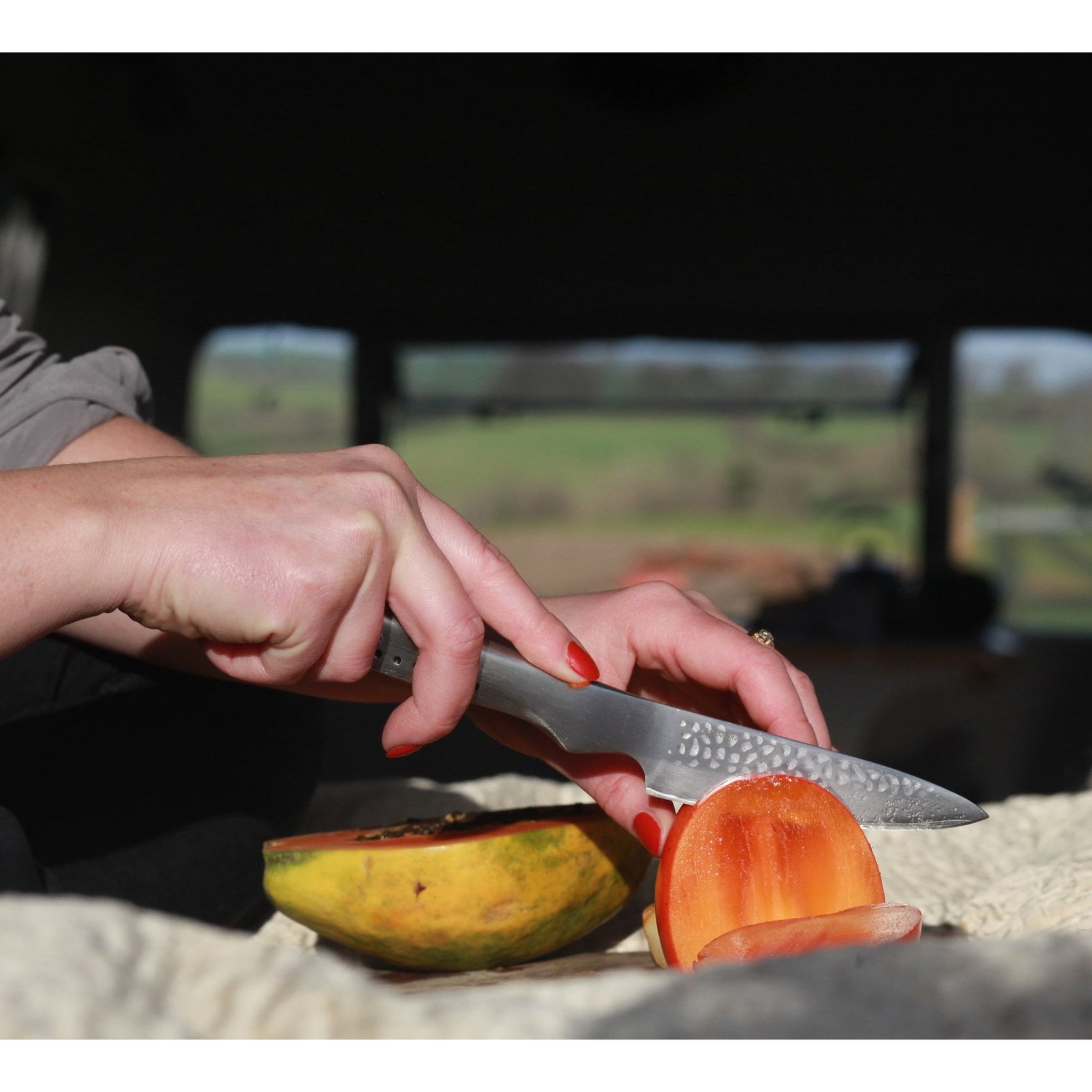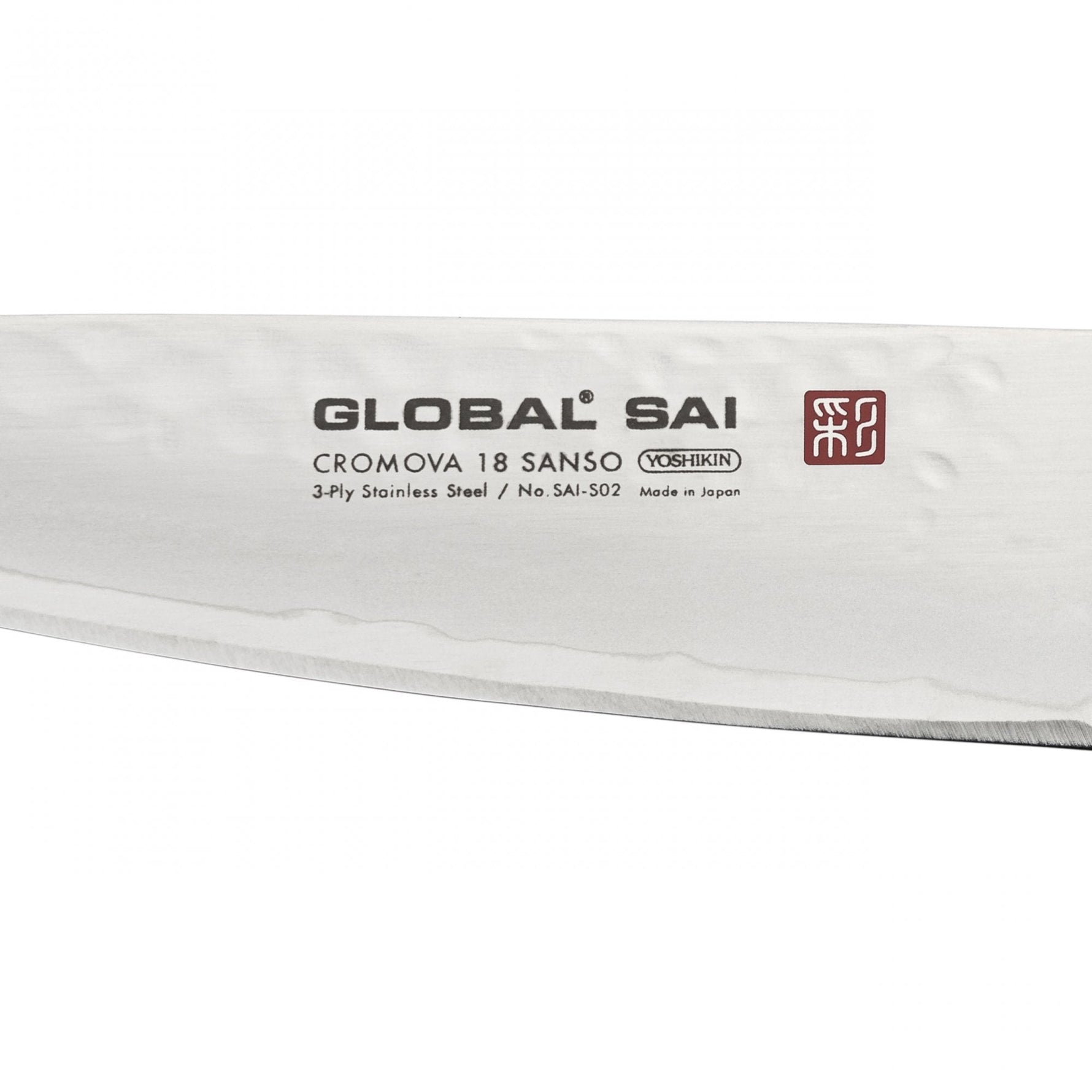 The SAI-S01 9cm & SAI-S02 10cm are small paring knives that can be compared to the GS-36 in the classic Global line. The knife is made for small kitchen tasks, such as peeling vegetables or cutting up fruit. Global SAI produce two 9cm paring knives, the other being the SAI-F01. The difference here is that the S01 has a longer hollow handle. This makes the knife a bit more comfortable in the hand, but the handle with the thumb rest forces you to hold the knife in a certain way and we would suggest that makes this paring knife a better cutting and slicing knife than the F01.