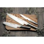 The Tachibana 3-Piece Knife Set is the perfect gift or starter set for a professional chef or cooking enthusiast. It includes the GU-01 20cm Chef’s Knife, the GUM-10 14cm Vegetable Knife and the GUF-30 9cm Paring Knife.