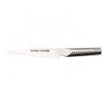 The Global Ukon GUS-22 Utility Knife is a multipurpose knife, ideal for slicing, mincing and prepping. It is a great kitchen knife for everyday use and the serrated blade makes it particularly useful for cutting fruits and vegetables with fine skins or soft insides. The GUS-22 will also glide through other foods such as salami, sausages and bread loaves.