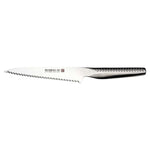 The GNS-08 is a scalloped or serrated version of the GNS-06. The teeth make it really good for cutting through vegetables with touch skins and soft interiors such as tomatos, plums and kiwis. This knfie can also be used as a small bread knife.