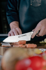 Global knives produces several variations of the Santoku knife; there are smaller versions of the Santoku, the GS-35 and the GS-37. Santoku knives are also well combined with fluting which helps prevent these vegetables sticking to the knife blades. The fluted version of the G-46 is the G-48.