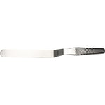 Global produce a few different styles of palette knives to compliment the Global collection. The GS-21 are the 'flat' palette knives, i.e. the blade lies horizontally with the handle of the knife. The GS-21 comes in 4 different sizes, starting with the smallest, GS 21/4 11cm, GS 21/6 15cm, GS 21/8 20cm and GS 21/10 25cm. All these different sizes feature the same handle, with has a comfortable thumb rest for added control. The blades themselves are not sharp, but are flexible making these knives great for getting under any food that is frying like eggs or burgers, or for controlling runny food whilst cooking. You can also use these knives for spreading icing.