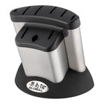 The collection is then completed with the Global GKS-210 kitchen scissors. They feature heavyweight cast steel handles and feel very substantial whilst held. The steel blades are thick and strong and contain small teeth to help grip chicken fillets and other meats. Between the handles, you will also fit a nutcracker. These scissors will also fit into the butcher's steel slot on most ship-shape type Global blocks.