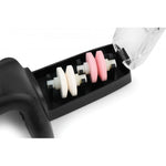 Global Silver & Black Ceramic Water sharpener. These pull-through sharpeners work in the same way as the Minosharp sharpeners but are branded to match Global Knives. Simply wet the wheels and run your Global knife through the two slots which contain medium and coarse wheels to sharpen the edge of your knives. Comes in black, red or stainless-steel finish.