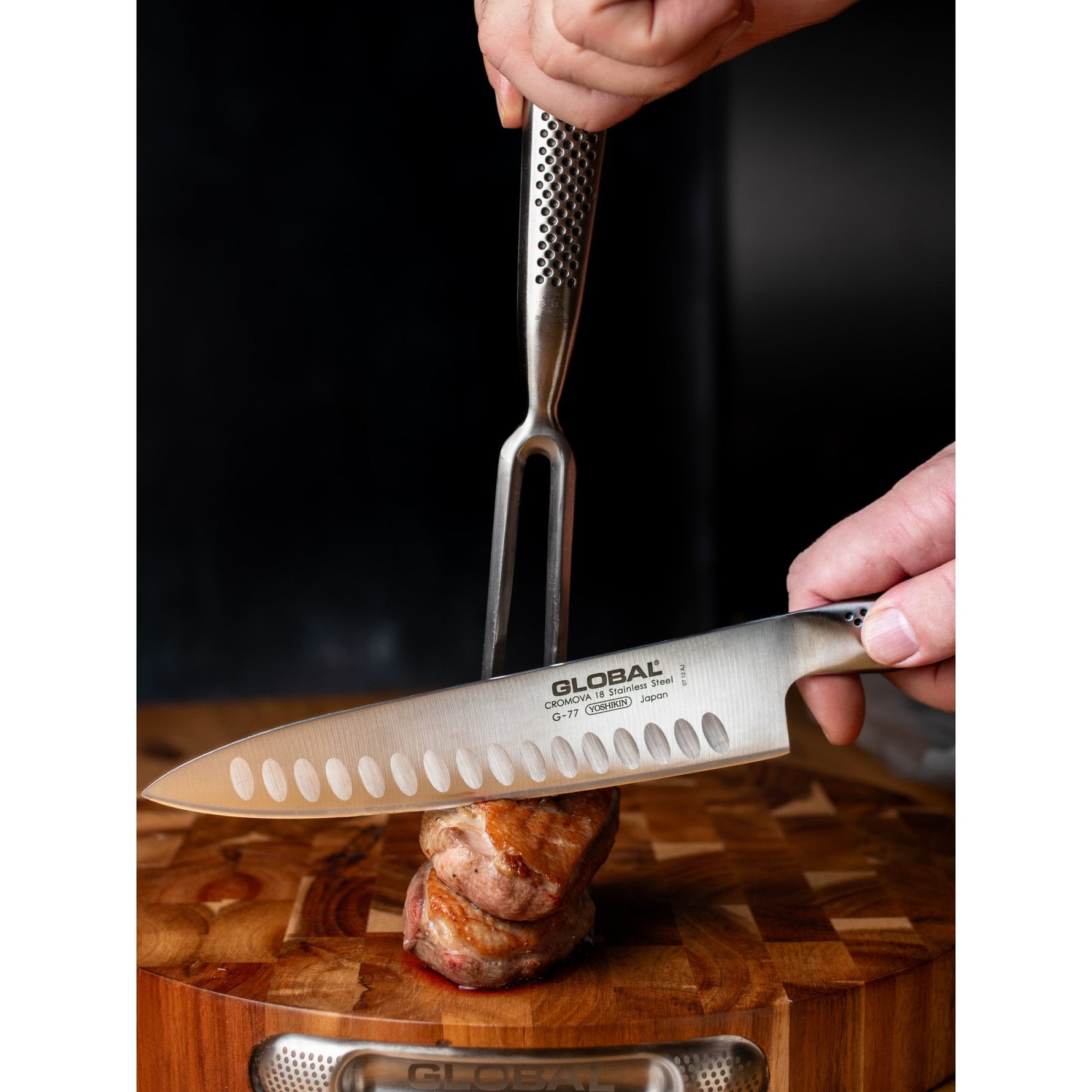Air is represented in cuisine by poultry and the Global Kaze collections have been influenced by knives used to prepare poultry. Knives in the Kaze collection are also fluted, the flutes creating air pockets which prevent food from sticking to the blades.