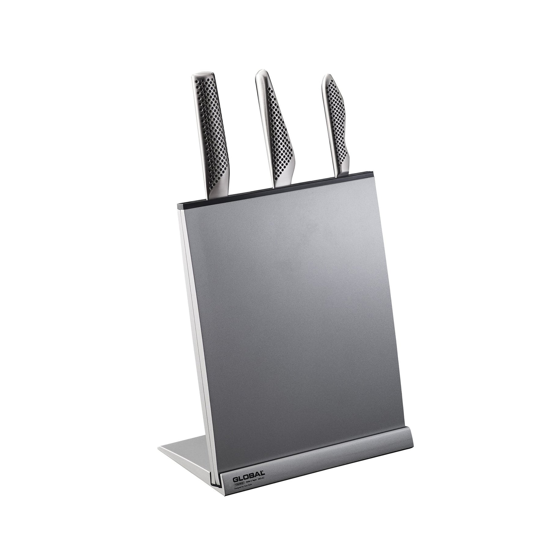 Super stylish Global Pad Block suitable for up to 3 knives. This set comes with a G-2 20cm cook's knife, GS-3 13cm cook's knife and GS-38 Parking Knife. A really good starter set that will cover most kitchen tasks and does not take up too much room.