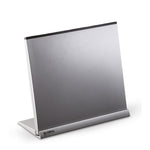 The stand is made from alluminium and has a brushed finish. 5 Knives can fit in the slots provided by sitting horizontally along the edge of the block. The overall look is really slick and has a very futuristic look.