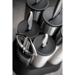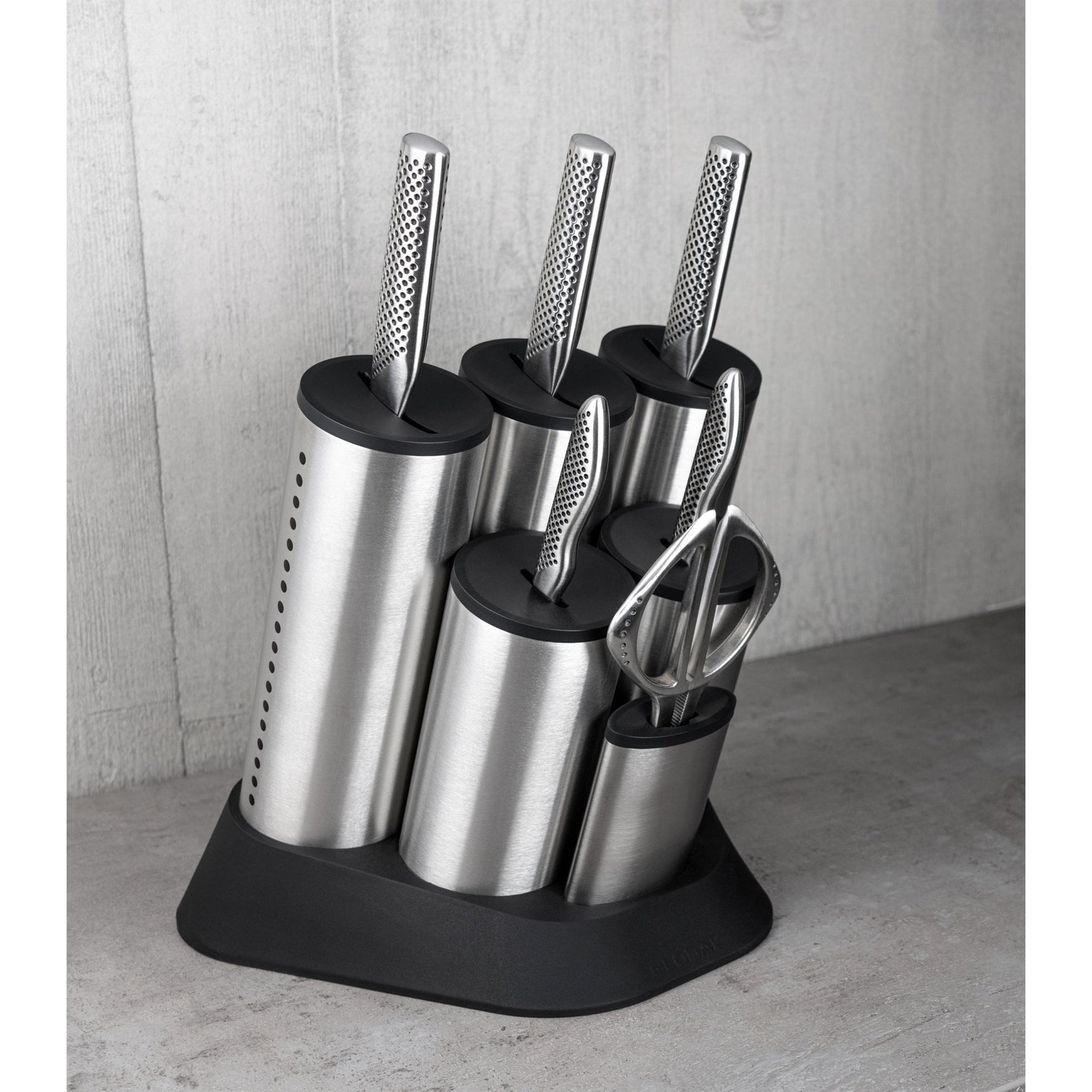 The original ‘Team Classic’ knife block features 6 stainless steel cylinders made from the finest 18/10 material. The set includes a G-77 Chef’s knife, G-9 Bread knife, G-82 Carving knife, GS-36 Utility knife, GS-38 Paring knife and GKS-210 Scissors.