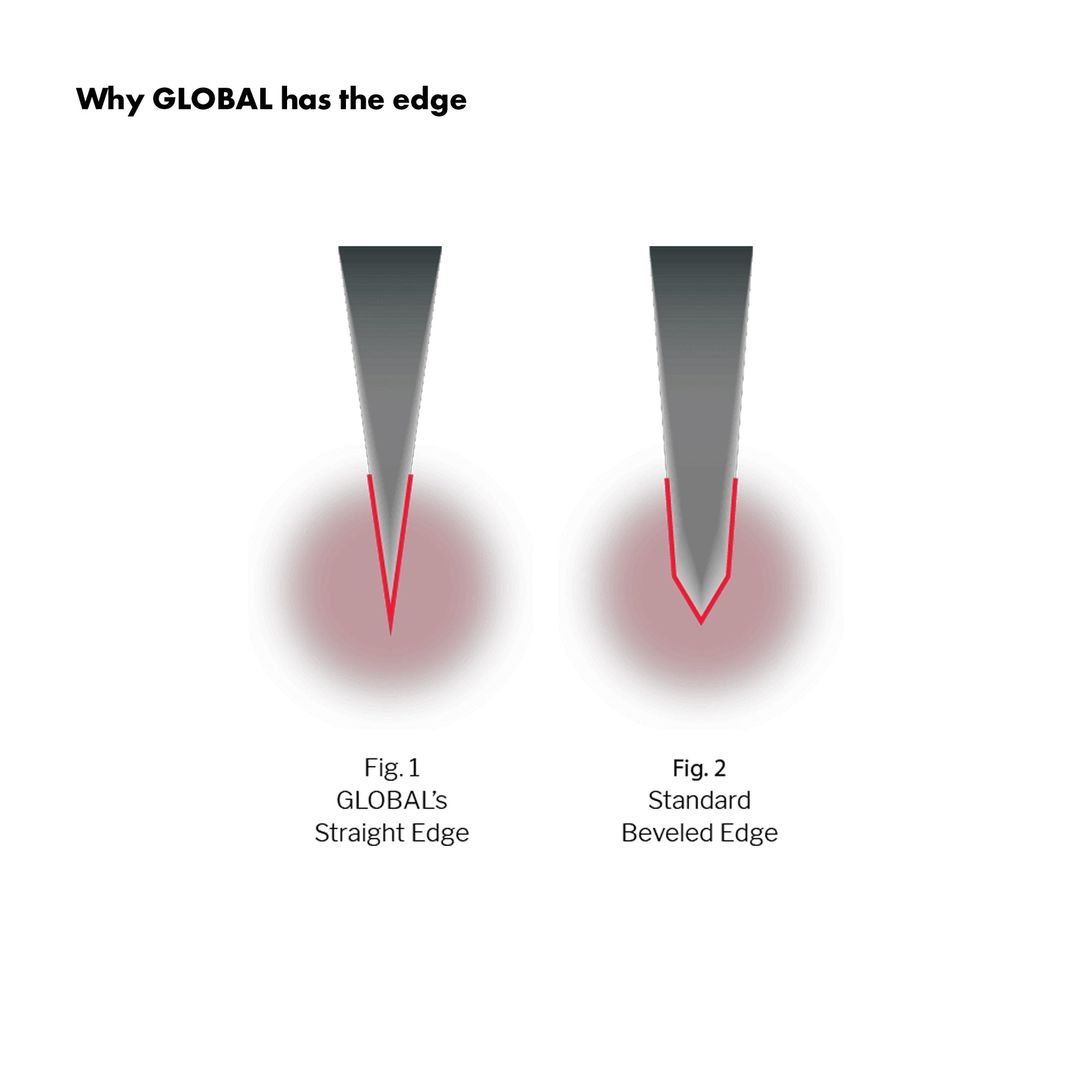 Ultra Sharp Blade: GLOBAL’s unique convex, 15-degree cutting edge results in a dramatically sharper knife that stays sharper for longer