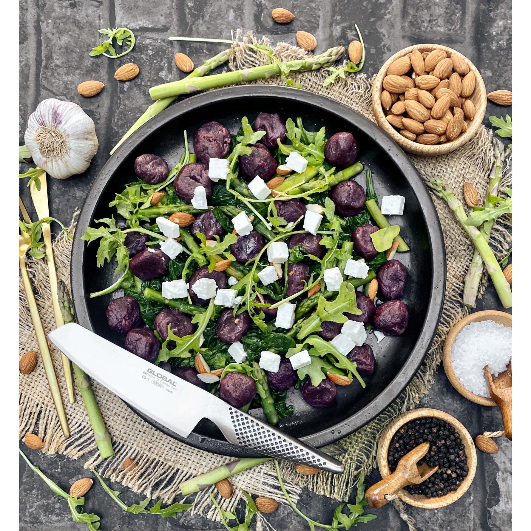 European cooking tends to use a lot more chopped vegetables than in Japan and so this knife has always been favoured in sets by Global. There are quite a few variations of this knife within the Global range. The equally popular Global GS-5 is the small version, the G-81 is the fluted version and there is a fully forged GF-36 for professional chefs as well.