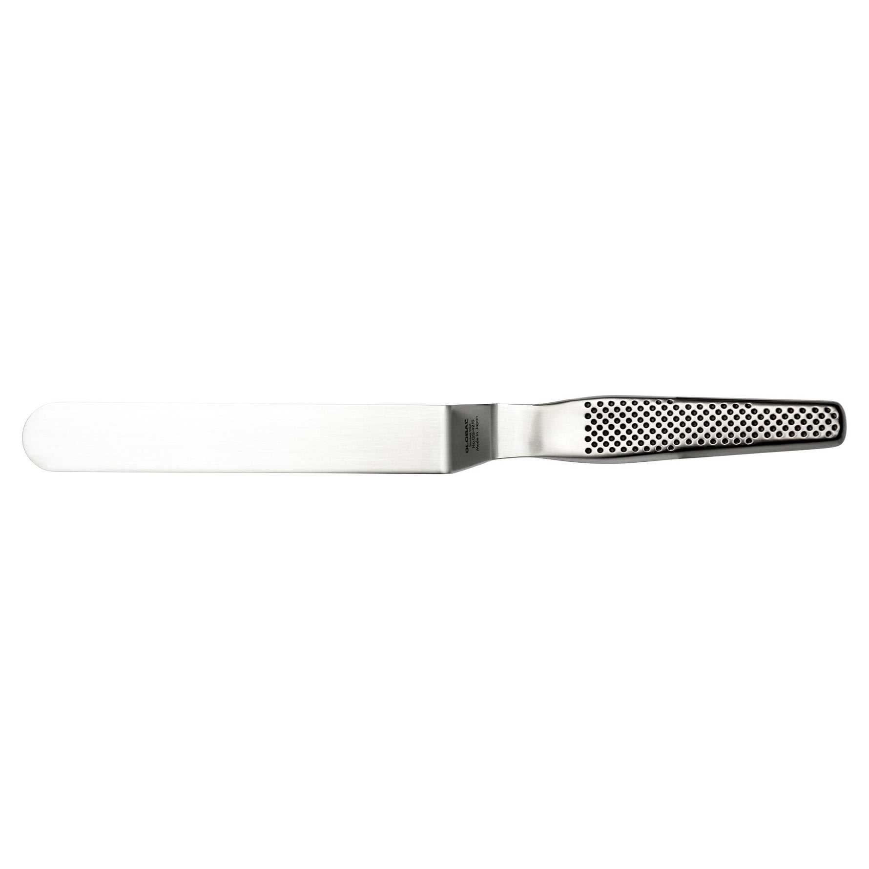 Global produce 4 different sizes or cranked spatula, a 10cm, 15cm, 20cm and 25cm. These 'cranked' spatulas are so named due to the large kink in the knife blade. This raises the handle somewhat away from the cooking surface, keeping your hands cooler. It also makes it easier to get a fully flat connection between the knife blade and the frying surface, ideal if you need to press down on any burgers or bacon to help it cook faster. All the GS-42 series feature a hollow handle with thumb rest for added control.