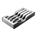 Featuring four of the knives from our ‘Little Essentials’ range of 12 kitchen knives, this G-88/4003 Knife Dock Set compiles a range of small knives, each with specific characteristics that work together to form a comprehensive versatile knife set. Included in the set is a 9cm Paring Knife, 12cm Scalloped Utility Knife, 12cm Plain Utility Knife and a 12cm Santoku Knife. If that isn’t enough, this set is presented in the Global ® In-Draw Knife Dock, bringing the ideal storage solution to your small kitchen knives.