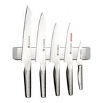 The GN-004 is Global Ni's large size bread knife and has a saw like blade for sawing through the crustiest loaves of bread. If you have bought a Global Ni block set we do advise caution though as this blade does not fit in some of the smaller blocks. For those looking to complete block sets we also suggest the GNM-09 bread knife which has a slightly smaller 21cm blade.