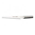 The Global Ukon GU-03 Bread Knife has a long, serrated blade, perfect for slicing through thick crusty bread loaves and soft bread rolls. The GU-03 is also great for slicing soft fruit and vegetables such as tomatoes because the serrated blade glides into the delicate skin, preventing you from crushing the juicy inner layer, leaving a nice clean finish.
