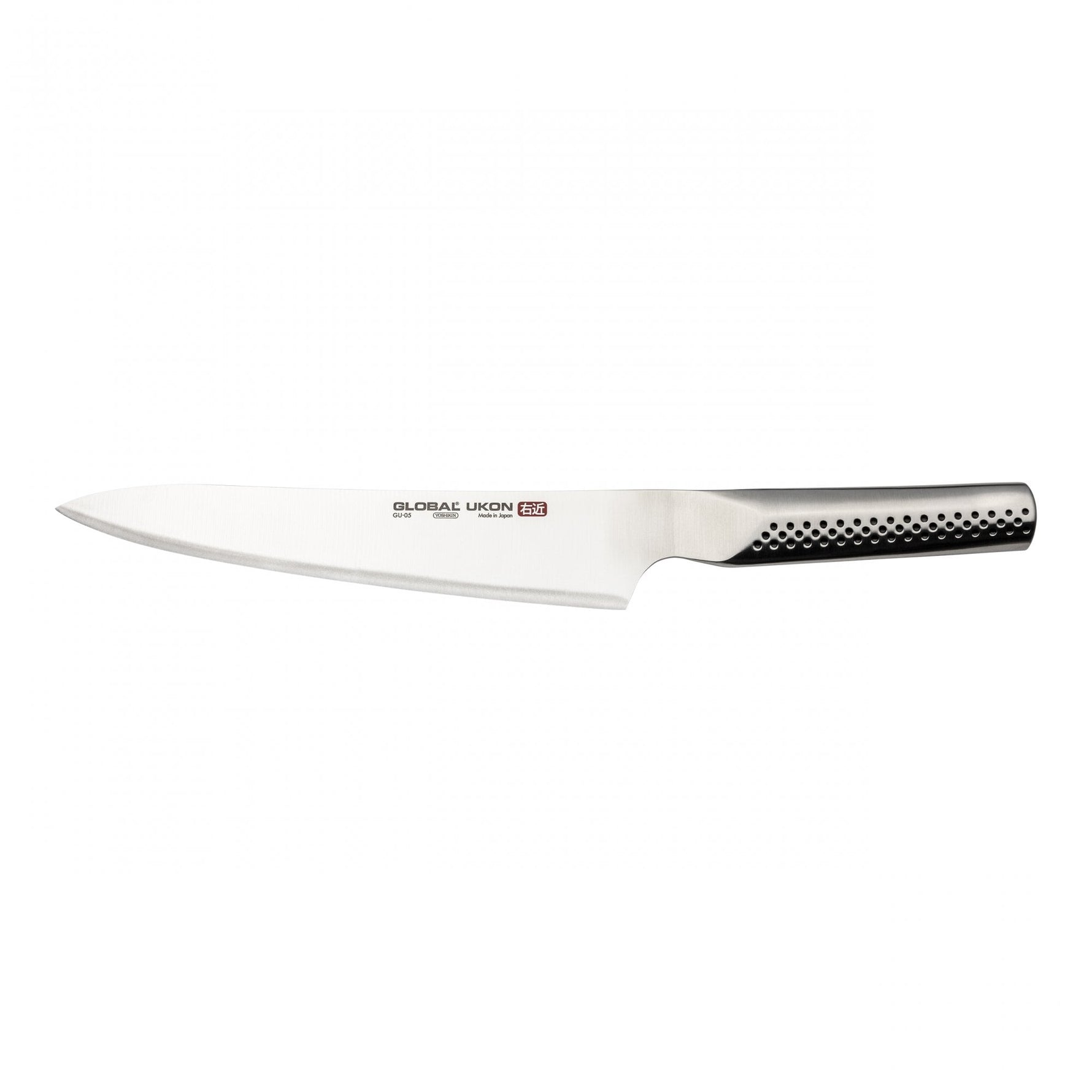 The Global Ukon GU-05 Carving Knife features a long, narrow blade that is slightly curved to effortlessly glide through cooked meats and poultry. This specialist knife is stylish, functional and perfectly balanced allowing you to carve the finest slices for your Sunday roasts, BBQ’s, parties and buffets.