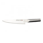The Global Ukon GU-01 Chef’s Knife is a versatile all-purpose blade that excels at every cutting task you can think of in the kitchen. The GU-01 is great for chopping vegetables, meat and fish, and it can also be used to finely chop herbs or peel garlic. Whatever the task, slicing, dicing, chopping or mincing, you can rely on this chef’ knife to perform every time.