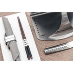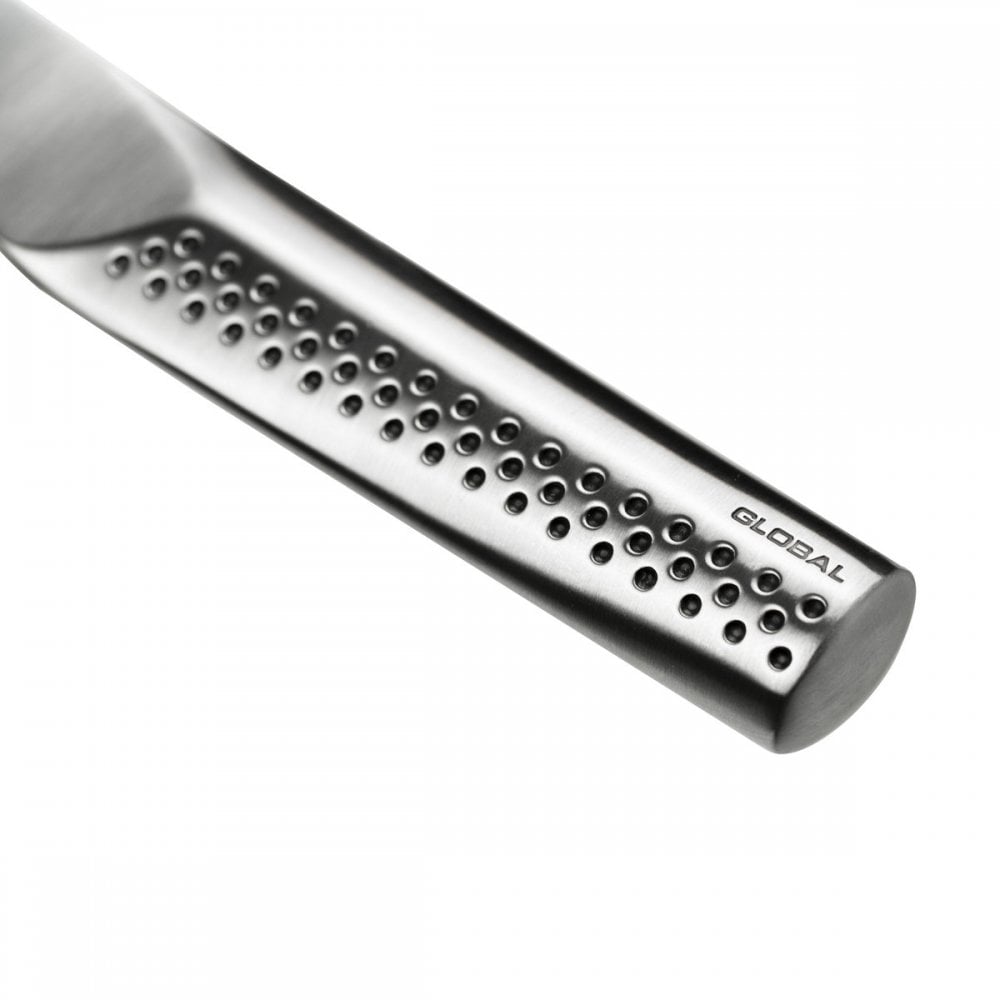 In true GLOBAL tradition, the knife is constructed from the best Stainless Steel material and the UKON series features thicker blades to enhance performance. UKON knives are subject to even more precise grinding and finishing work, making them 10 percent sharper out of the box. The knives are designed with an ambidextrous thumb rest that sits closer to the blade for added control and efficiency. The underside of the handle features GLOBAL's trademark indentations, making UKON knives extremely comfortable to hold.
